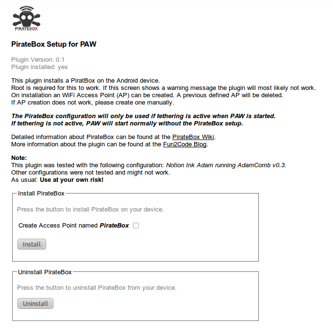 here, so you know on which configurations PirateBox is running.